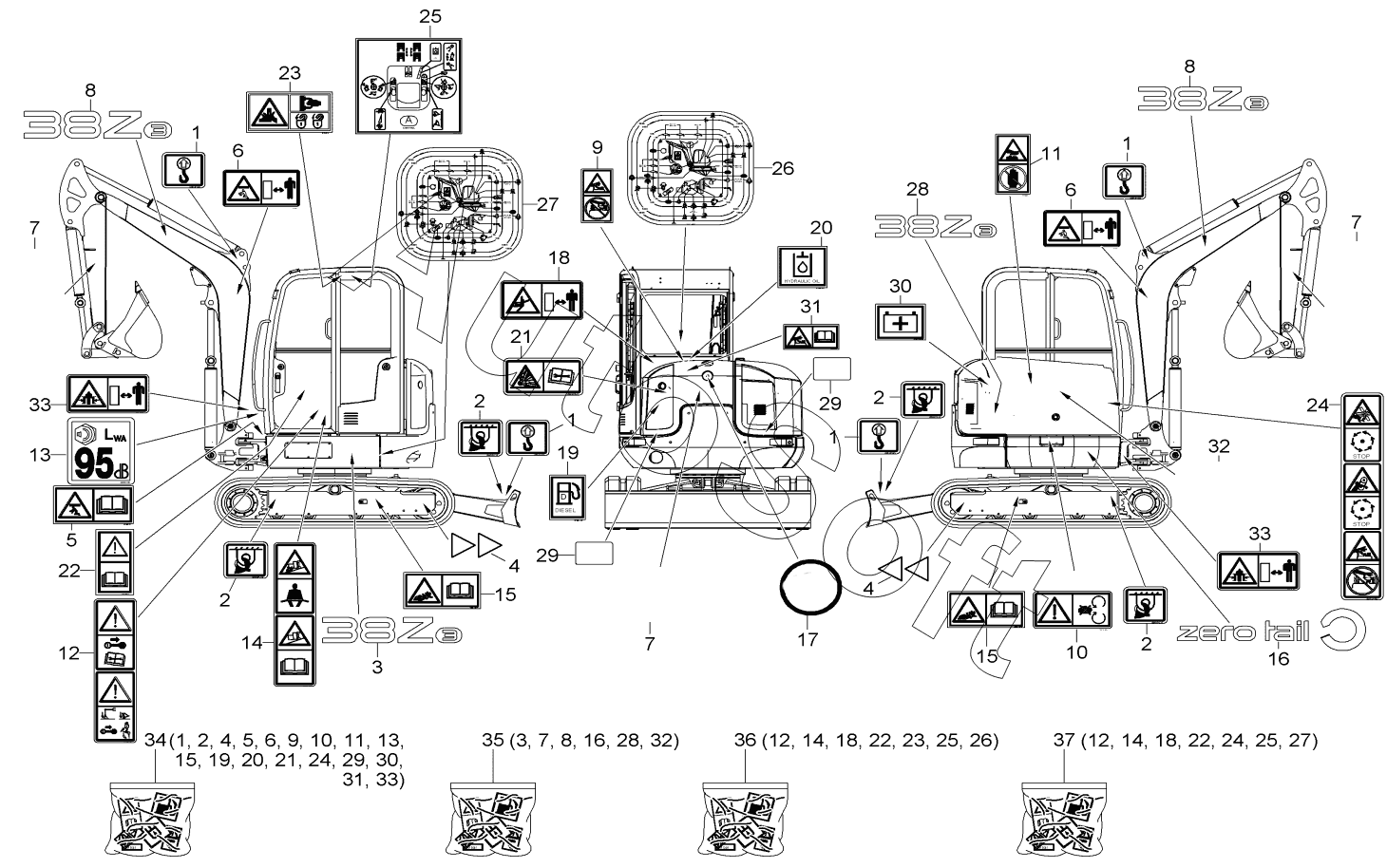 Каталог запасных частей к технике: Wacker Neuson Weidemann38Z3 (2010). STICKER E: AG01673
