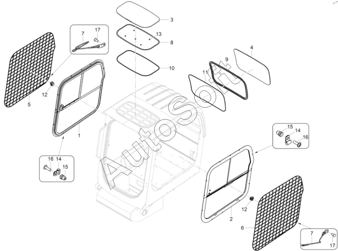 Каталог запасных частей к технике: Wacker Neuson SW16 (2020). Cab windows