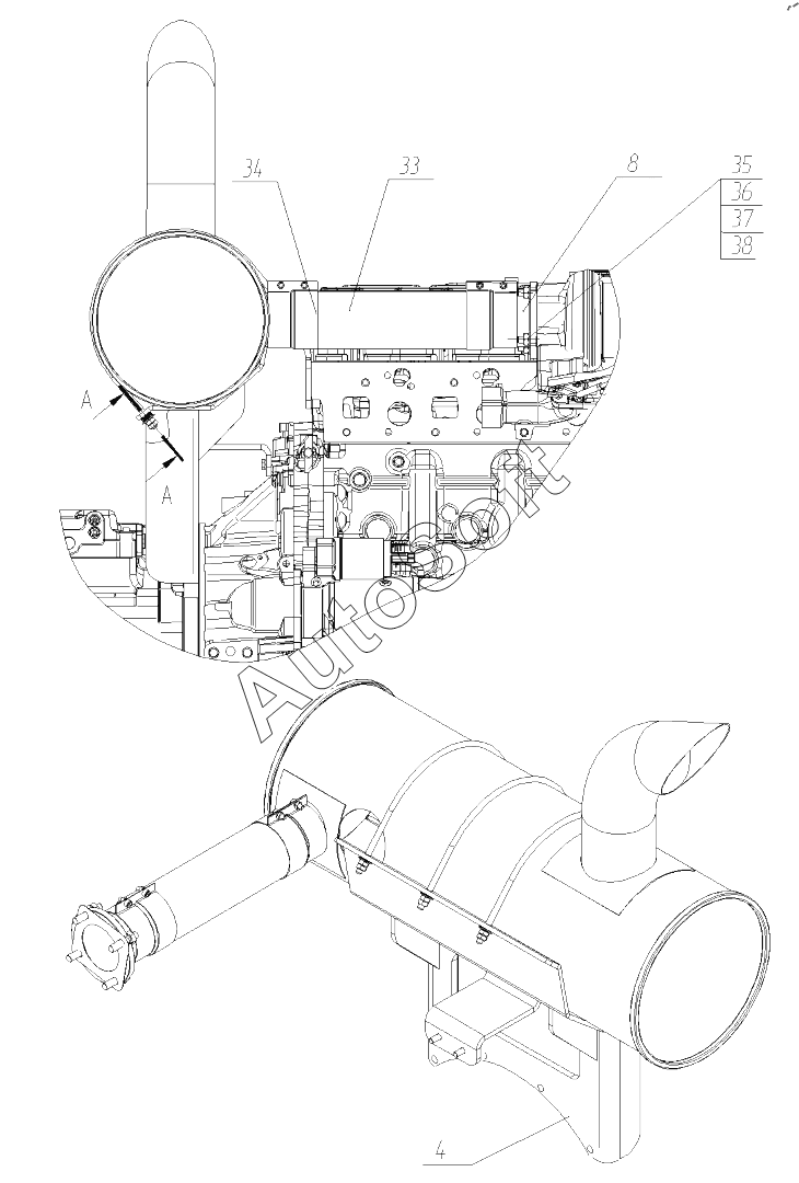 Каталог запасных частей к технике: ТВЭКС E330C (2024). Установка глушителя. 330-05-28.01.000