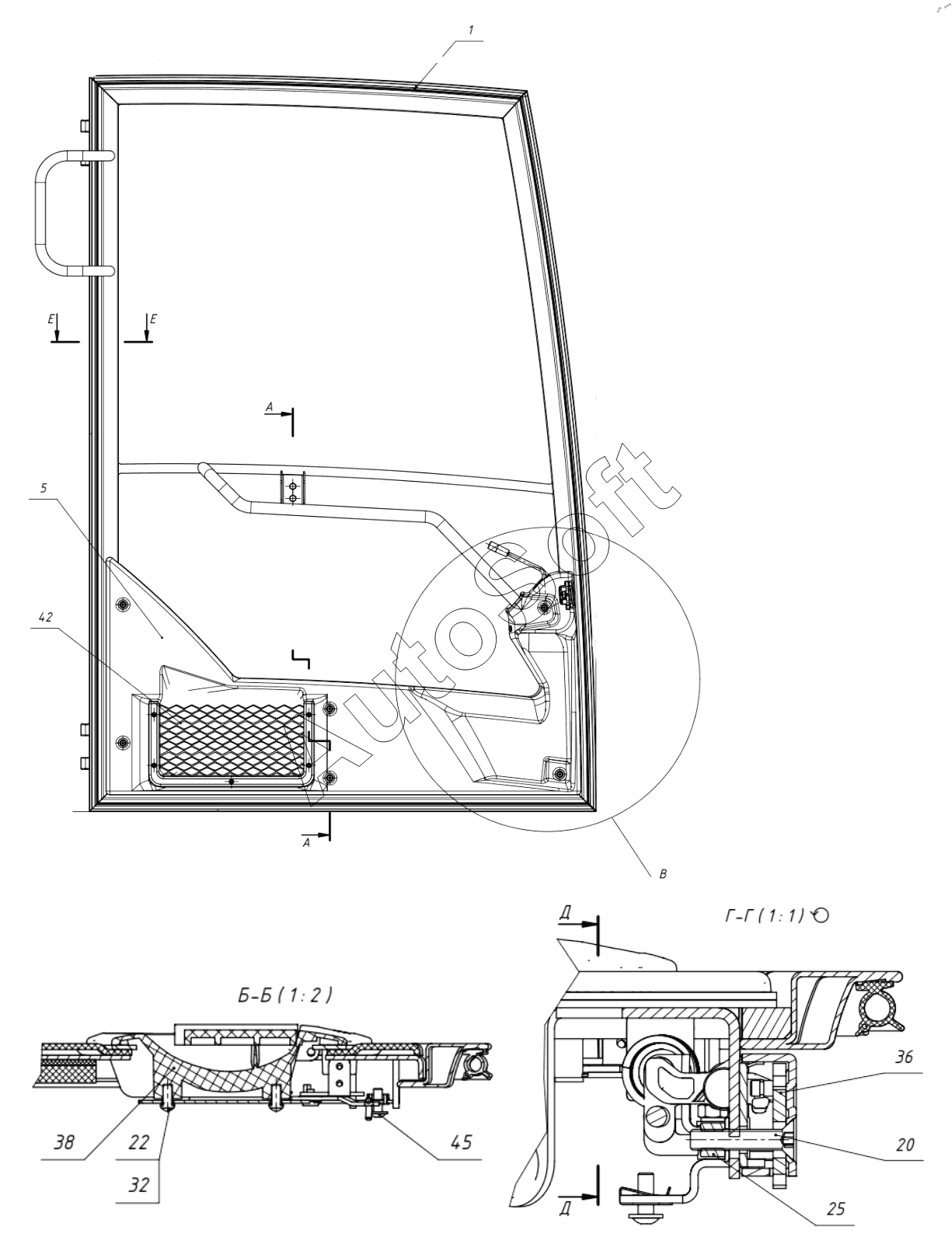 Каталог запасных частей к технике: ТВЭКС E330C (2024). Дверь в сборе. 405-00-23.40.000-19