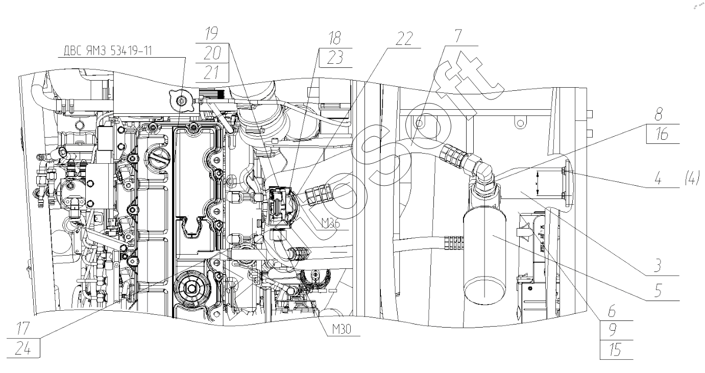 Каталог запасных частей к технике: Брянский Арсенал TLH 4007-12 (2023). Установка выносного масляного фильтра. 3507-00-28.06.000