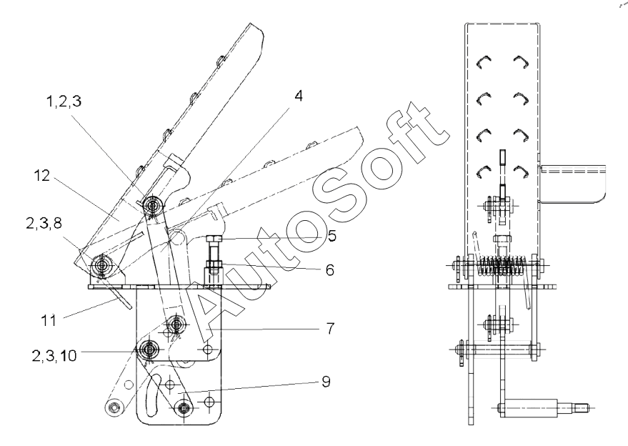 Каталог запасных частей к технике: Брянский Арсенал АГ-140 (2023). Педаль газа 257.04.09.00.000-03