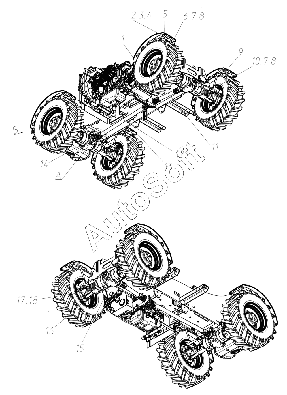 Каталог запасных частей к технике: Брянский Арсенал TLH 4007-12 (2023). Установка мостов. 3507-01-50.30.000