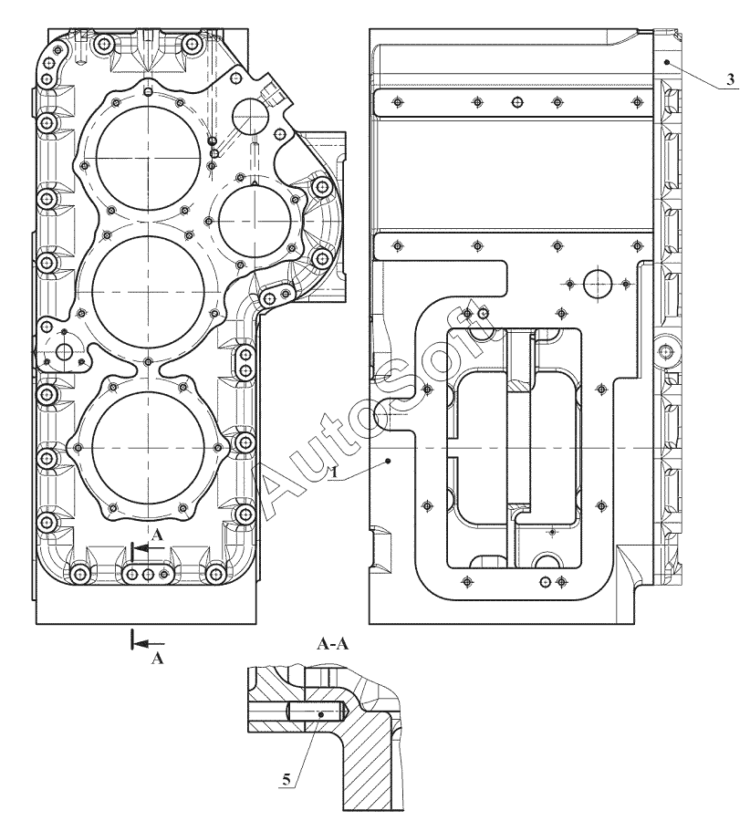 Каталог запасных частей к технике: Амкодор ГМП серии У35615 модели 332.17.15.000 (2018). У35615-01.030-Б Корпус