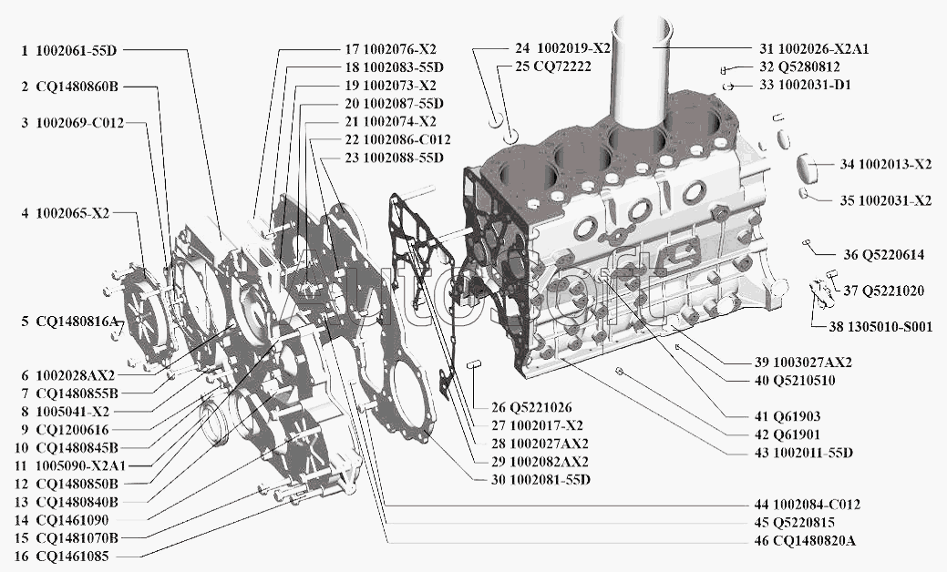 Каталог запасных частей к технике: BAW Двигатели BAW-CA4DC2 (2010). Блок цилиндров двигателя