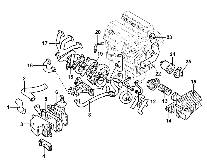 Каталог запасных частей к технике: Alfa Romeo Alfa GTV V6 TB (2012). Детали инжекторного двигателя (2.0л)