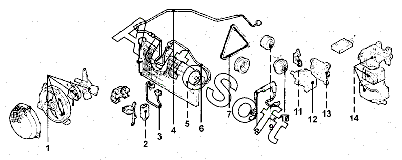 Каталог запасных частей к технике: Toyota Corolla Liftback 1.6 GLi (2012). Кондиционер 1