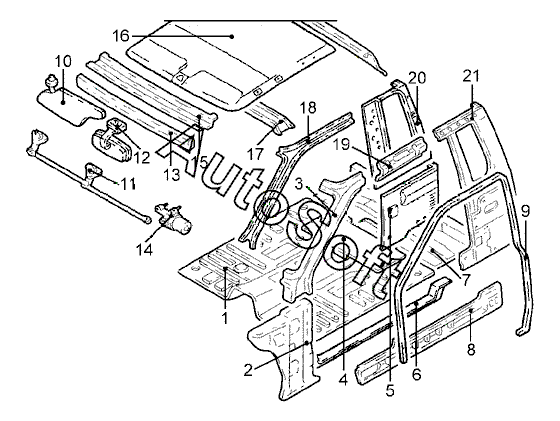 Каталог запасных частей к технике: Mazda B 2500 Pick Up 4WD (2012). Кузов 5
