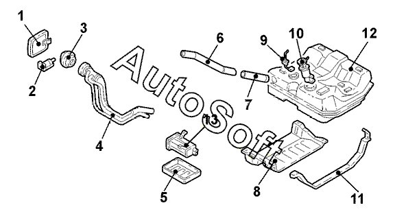 Каталог запасных частей к технике: Hyundai Sonata 2.0 GLS (2012). Система выпуска газа/ Топливная система 3