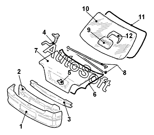 Каталог запасных частей к технике: KIA Shuma LS (2012). Крышка багажника и бампер задний (седан)
