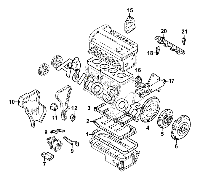 Каталог запасных частей к технике: Daewoo Nubira Combi CDX (2012). Детали инжекторного двигателя (2.0л)