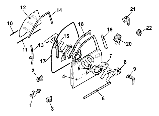 Каталог запасных частей к технике: Daewoo Leganza SX (2012). Дверь передняя