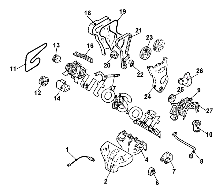Каталог запасных частей к технике: Daewoo Leganza SX (2012). Детали двигателя