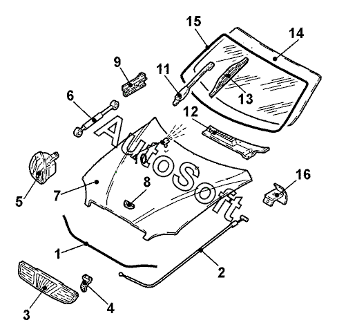 Каталог запасных частей к технике: Daewoo Leganza SX (2012). Передняя часть кузова: решетка радиатора, фары, капот, лобовое стекло