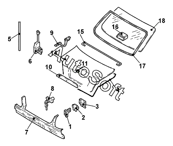 Каталог запасных частей к технике: Daewoo Leganza SX (2012). Задняя часть кузова: крышка багажника